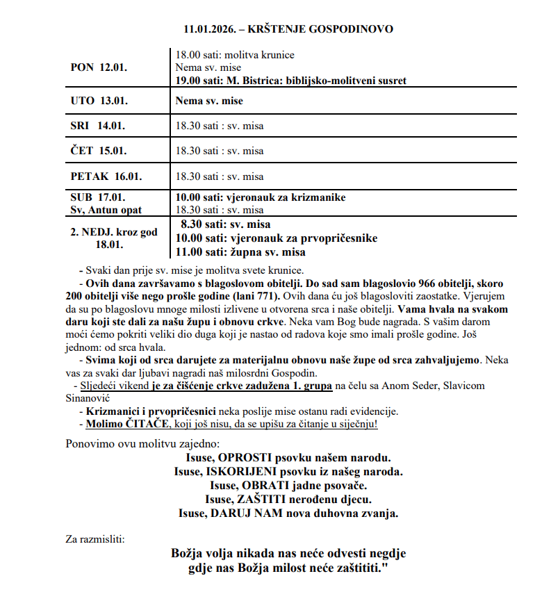 11.01.2026. – KRŠTENJE GOSPODINOVO