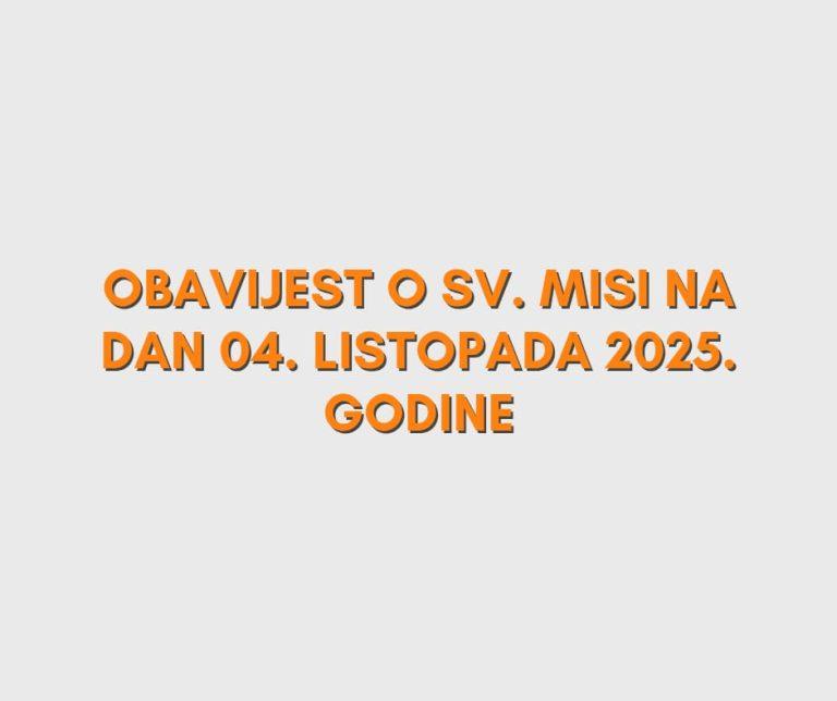 Obavijest: u subotu 11. listopada 2025. godine bit će sv. Misa u Petruševcu u 09.00 sati.