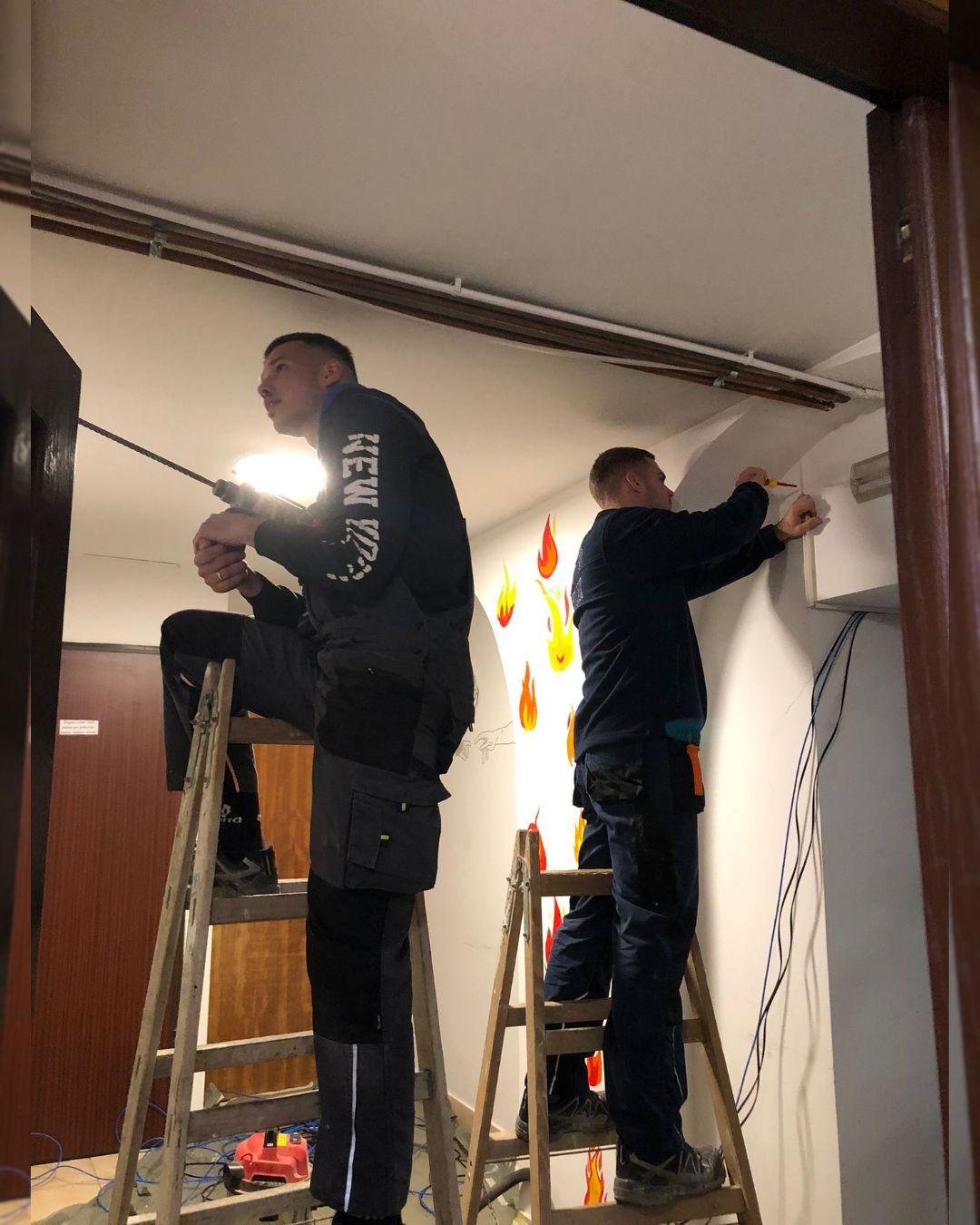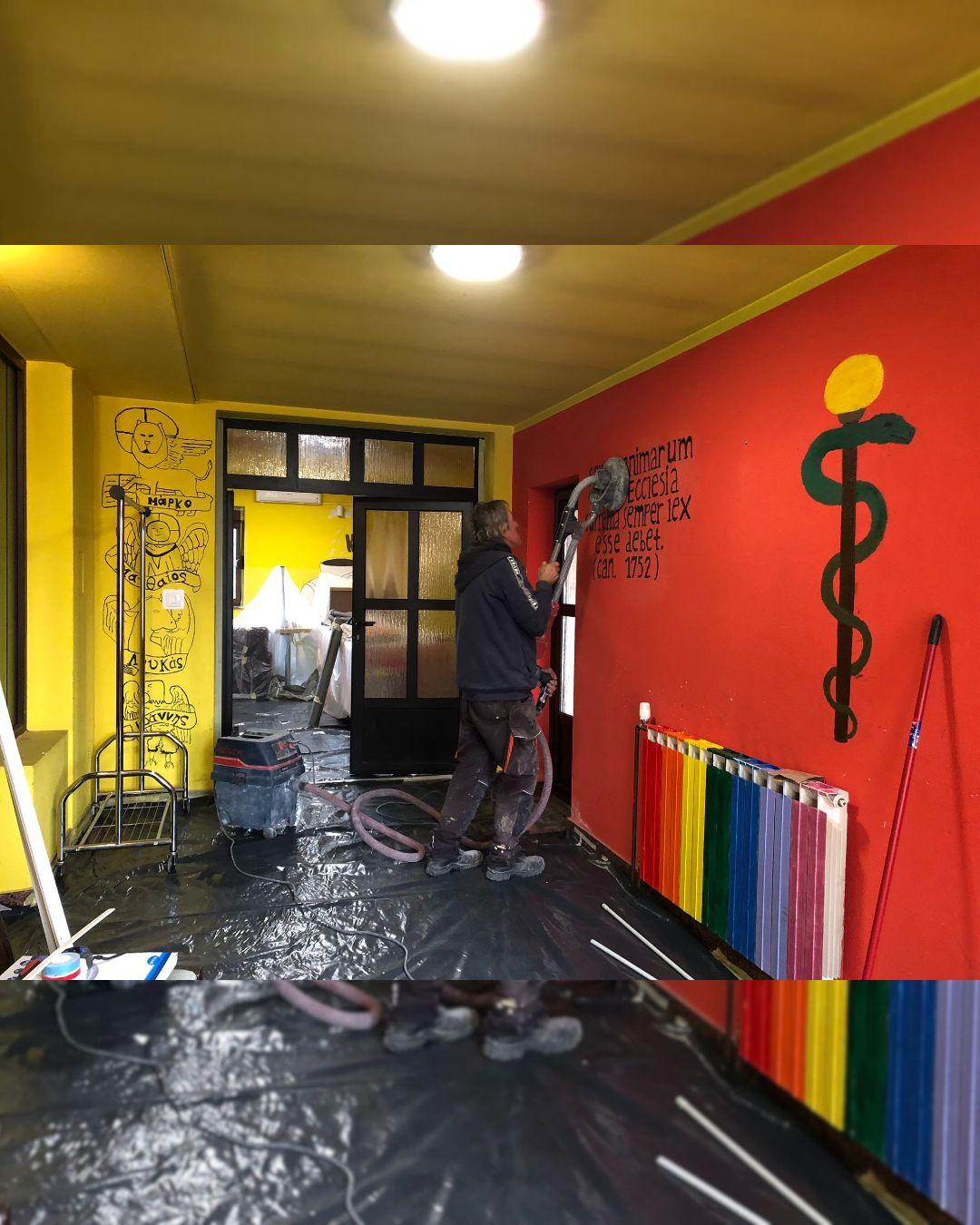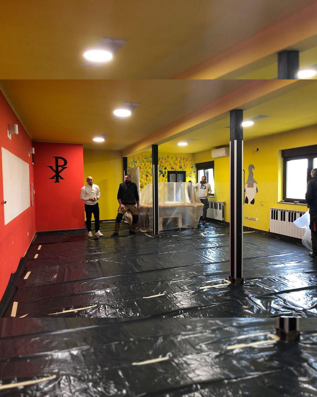 Radovi u župnoj kući se nastavljaju. Priprema se dvorana za postavu čeličnih greda, nosača, koje bi sutra trebao postaviti naš Ivica Knezović, te maknuti dva stupa u dvorani, da se dobije na prostoru. Te grede ćemo obući u knauf. Poslije treba prefarbati dvoranu, ulaz u dvoranu, kuhinju i hodnik prema sakristiji. Električari pak provlače kablove tako da će se moći pratiti sv. misa u župnoj dvorani kad u crkvi ne bude mjesta.