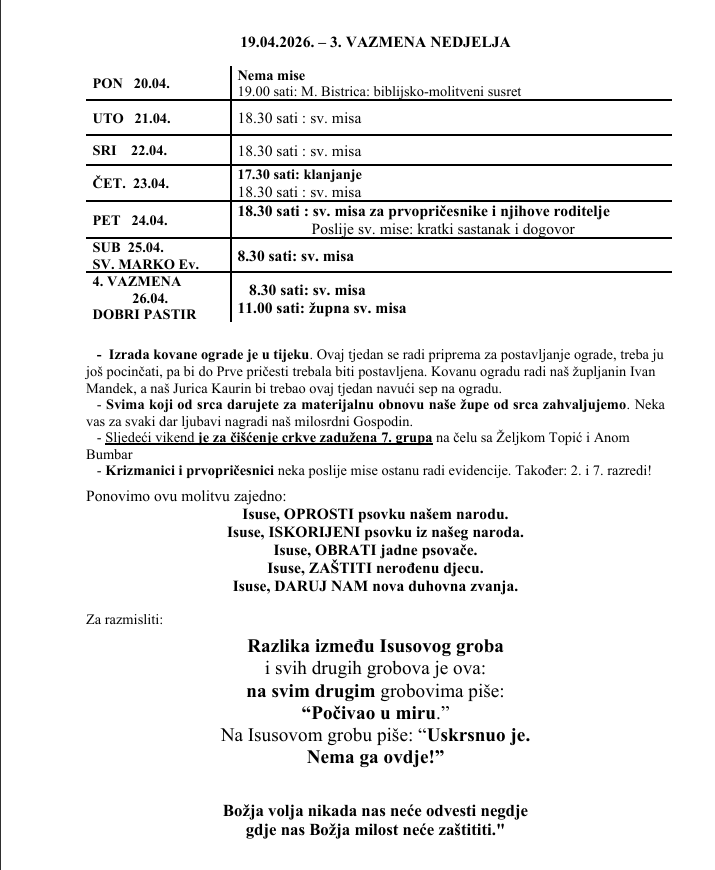 Neka dobri Gospodin blagoslovi sve dobronamjerne nakane svih dobronamjernih ljudi naše malene župe.
